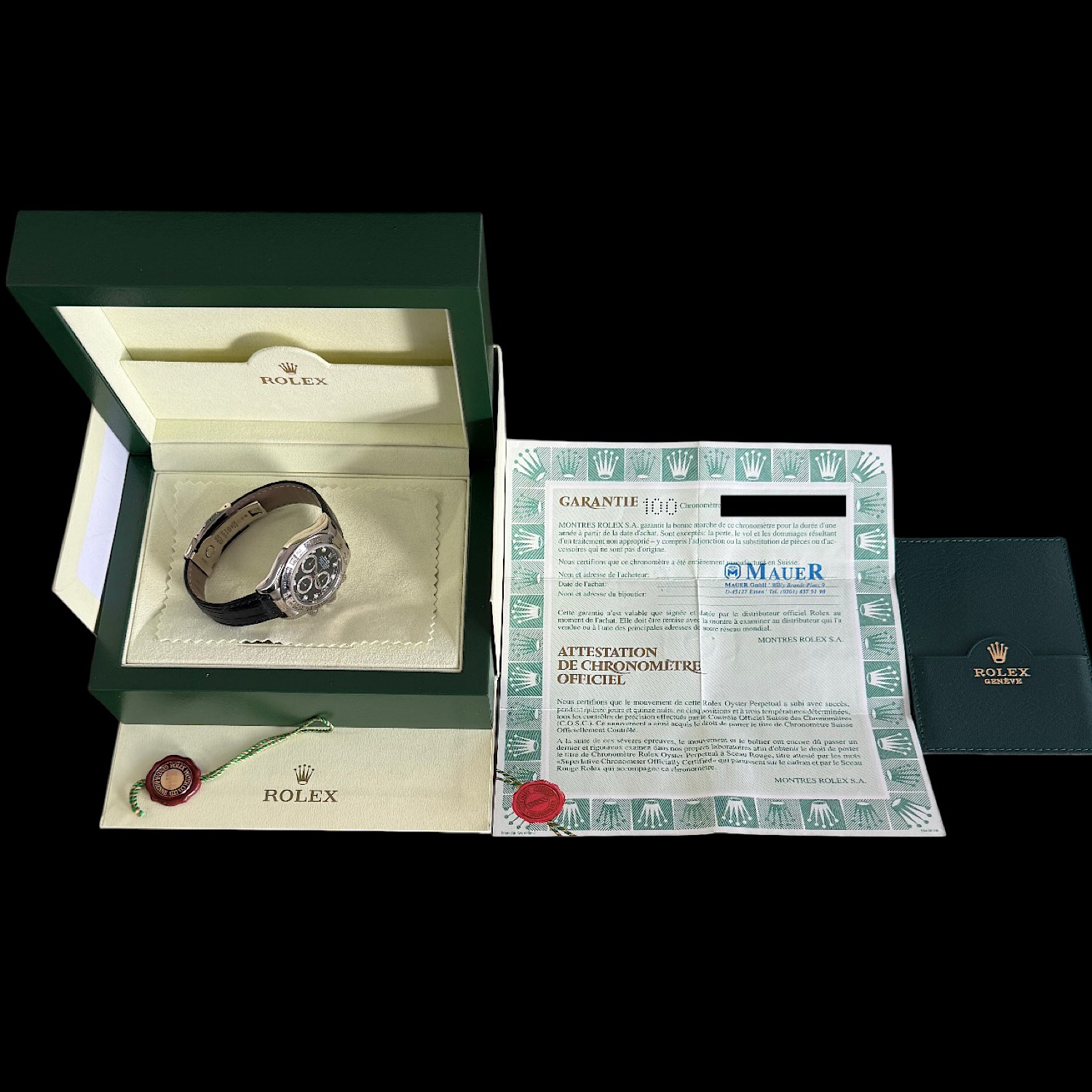- Lieferumfang: Rolex Uhrenbox mit Umkarton, gelochte und gestempelte Papiere im Ledermäppchen