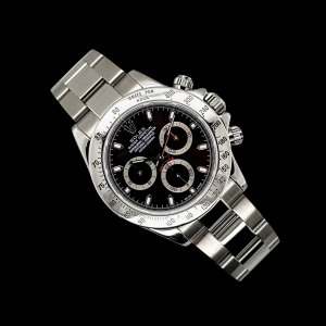 Das schwarze Lederarmband wurde im Laufe der Zeit erneuert. Es ist eine originale Rolex Dornschließe aus Edelstahl montiert. Beides ist hervorragend erhalten. Gerne sind wir Ihnen bei der Suche nach einem originalen Lederarmband in einer für Sie passenden Farbe behilflich.