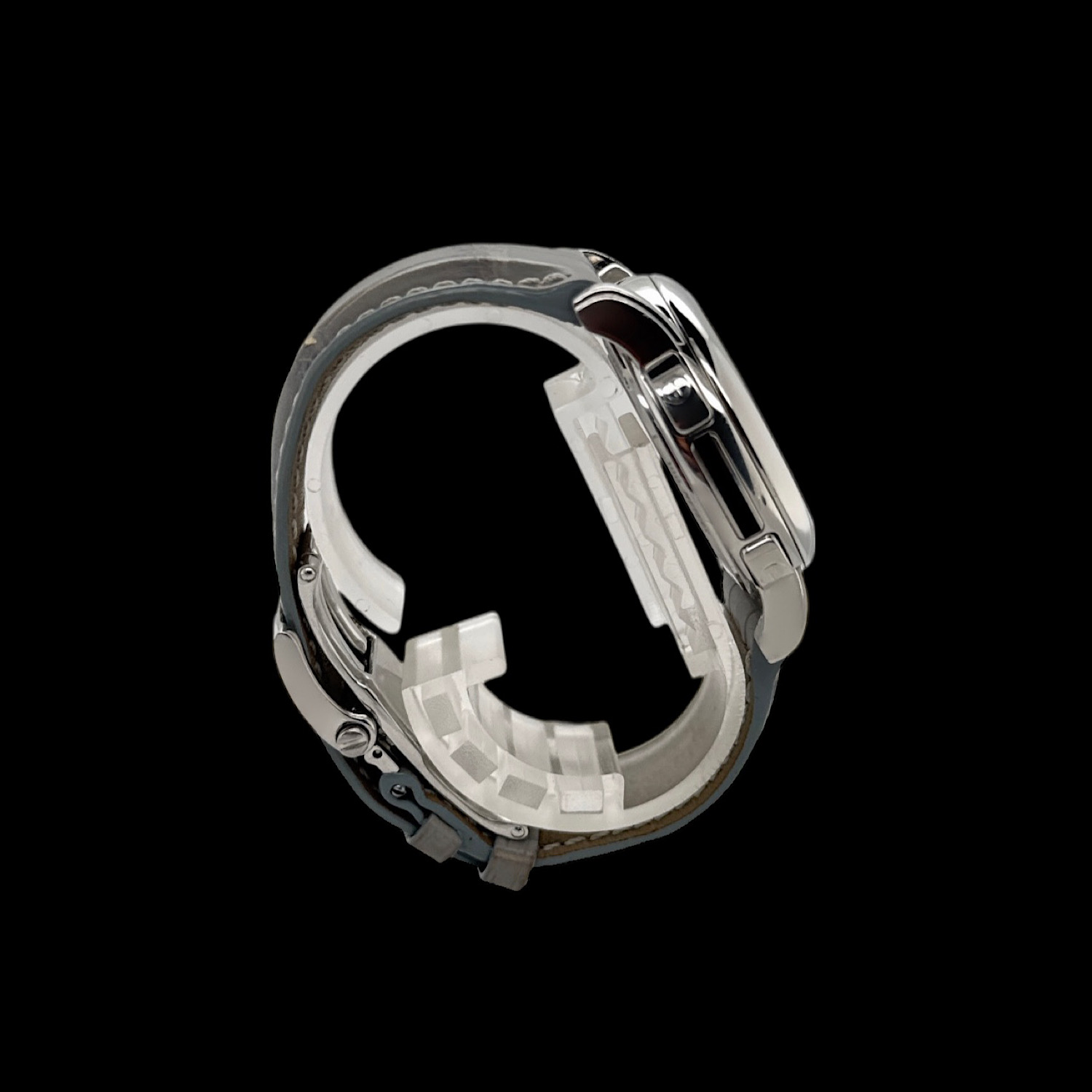 Das originale Lederarmband mit der Edelstahl-Faltschließe befindet sich in sehr gutem Zustand mit natürlicher Patina.