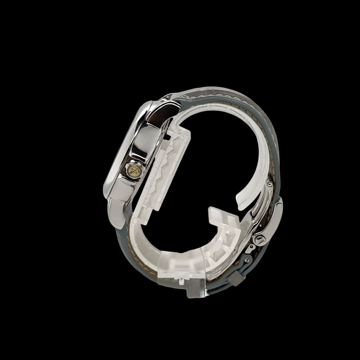 Aufgrund der CITES-Bestimmungen können Lederarmbänder aus geschützten Tierarten (z. B. Krokodil, Eidechse, Strauß) nicht außerhalb der EU versendet werden. In diesen Fällen liefern wir die Uhr mit einem hochwertigen Kalbslederarmband.